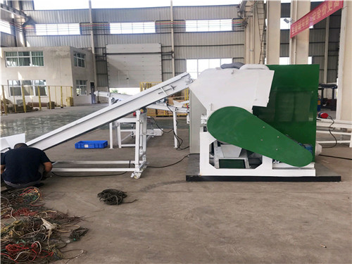 2、電線粉碎機(jī):該機(jī)是雜線銅米機(jī)的第一道工序,是把各種雜線廢線送入粉碎機(jī),經(jīng)過刀片旋切和研磨加工成銅米和塑料顆;旌狭,然后再進(jìn)行下一步加工,需要注意的是下料要均勻,防止忽多忽少,因?yàn)槿菀走^載停機(jī),刀片要定期研磨更換。
