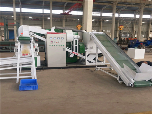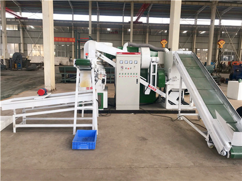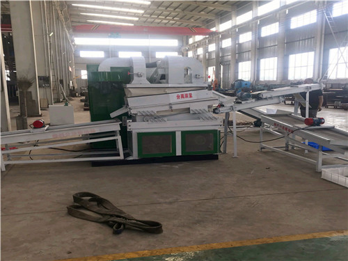 3、輸送機(jī):該機(jī)的作用是把粉碎后的銅米和塑料顆;旌狭陷斔腿氡戎胤诌x機(jī),輸送速度可以調(diào)節(jié),需要注意的是該機(jī)上面要裝強(qiáng)磁鐵,把經(jīng)過該機(jī)的銅塑顆;旌狭侠锩娴纳倭胯F粉吸附干凈。