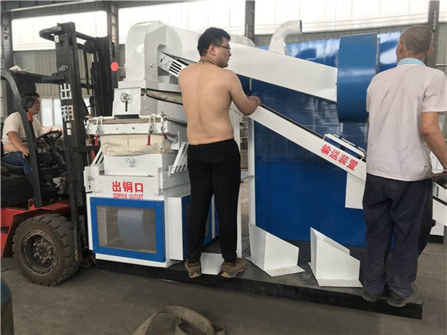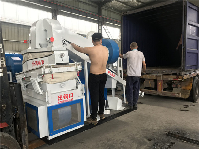 綠捷環(huán)保1000型全自動銅米機設(shè)計先進(jìn),結(jié)構(gòu)合理,電氣采用PLC程序控制,設(shè)備質(zhì)量可靠,性能穩(wěn)定。設(shè)備由撕碎機、皮帶輸送機、二級破碎機、風(fēng)機輸送機、振動篩,收塵器,液壓站,電器控制等組成。廢電線電纜通過撕碎破碎后,成為塑料破碎片與銅米,使之在篩面波形躍致力前行,通過氣流推吸及篩箱直線激振雙重作用分離芯皮,將銅米、塑料以及銅和塑料的混合物分別從不同的出料口送出,灰塵經(jīng)由風(fēng)道到達(dá)收塵器。調(diào)節(jié)振動頻率,振動篩由變頻控制,風(fēng)量大小由調(diào)節(jié)閥控制,全程動作由PLC程序控制,觸摸屏顯示各項運行參數(shù),操作維護方便,可加工的廢舊電纜20毫米以下,是大型回收加工廠的理想選擇。整機底板座由8#槽鋼加厚為10#槽鋼,更加穩(wěn)固;配電柜加大,智能控制整機工作,功能由10種增加至16種,可微調(diào);粉碎機部分增加水箱,工作時水冷循環(huán)開啟,碎料永不發(fā)熱,不易粘連;新款銅米機出銅率高達(dá)99.9%, 出銅率高!是大型回收加工廠的理想選擇。