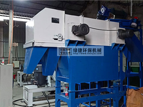 7.篩分后的物料根據(jù)直徑歸類之后進(jìn)入渦流分選機(jī),綠捷環(huán)保大直徑渦電流分選機(jī)可以分選到2mm-5mm,通過分選機(jī)將其中的鋁從物料中彈出來塑料膠條是落下去的。