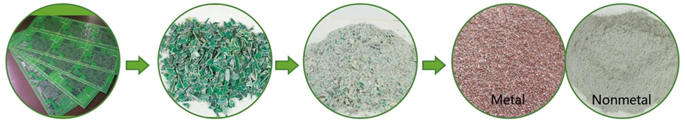綠捷廢電路板回收設(shè)備用于處理廢舊電路板、覆銅板、線路板及邊角料等物料中的金屬與非金屬的分離,再利用其中的銅和樹(shù)脂粉。