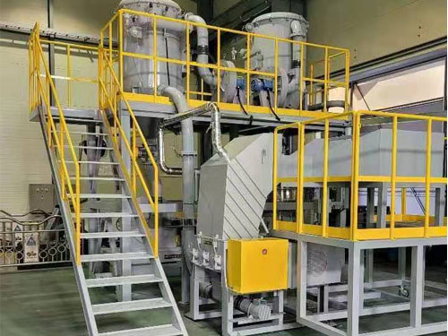 根據(jù)鋰電池原料進(jìn)行破碎后,破碎產(chǎn)物中各物質(zhì)實(shí)現(xiàn)了單體解離,塑料外殼,隔膜紙,銅箔,鋁箔等物質(zhì),包括鈷鋰金屬。其生產(chǎn)線為報(bào)廢電池進(jìn)入撕碎機(jī)進(jìn)行撕碎,撕碎后的電池進(jìn)入專用破碎機(jī)進(jìn)行破碎,將電池內(nèi)部正負(fù)極片及隔膜紙打散,打散的物料經(jīng)引風(fēng)機(jī)進(jìn)入集料器,然后經(jīng)脈沖除塵器把破碎中所產(chǎn)生的粉塵收集凈化,進(jìn)入集料器的物料經(jīng)閉風(fēng)器進(jìn)入氣流分選篩,通過(guò)氣流加振動(dòng)把正負(fù)極片中的隔膜紙進(jìn)行收集,同時(shí)把氣流分選機(jī)所產(chǎn)生的粉塵收集。然后混合物采用錘振破碎、振動(dòng)篩分與氣流分選組合工藝對(duì)廢鋰電池正負(fù)極組成材料進(jìn)行分離與回收。